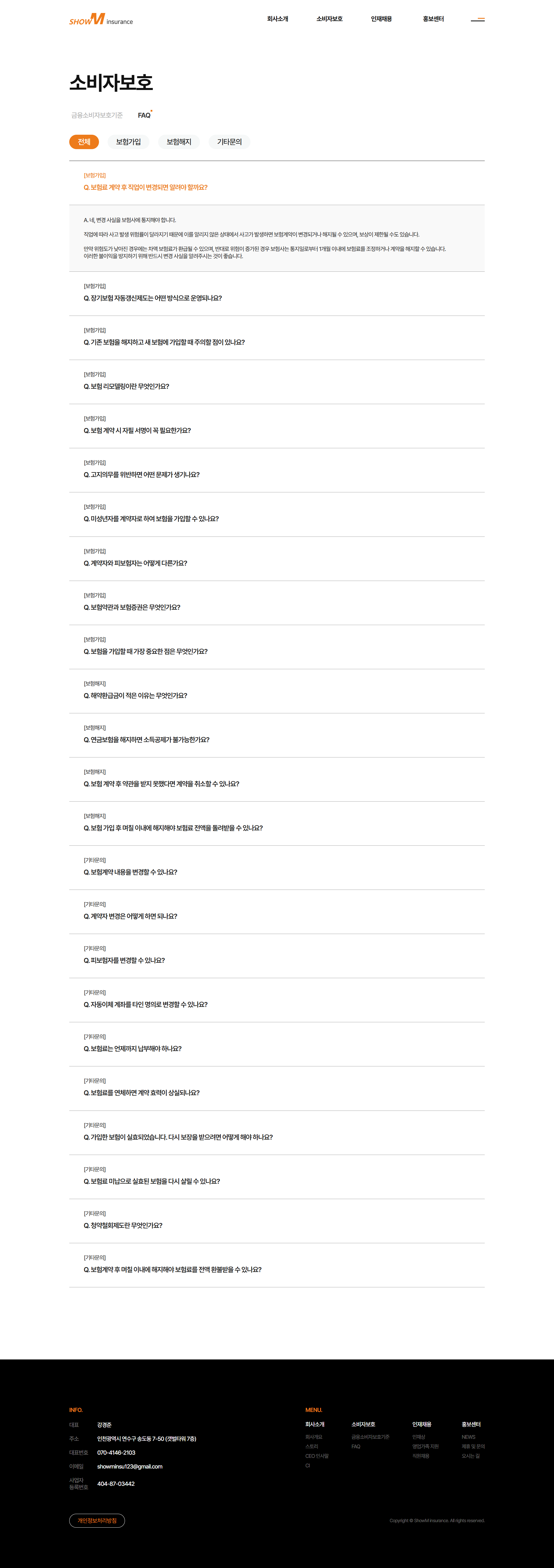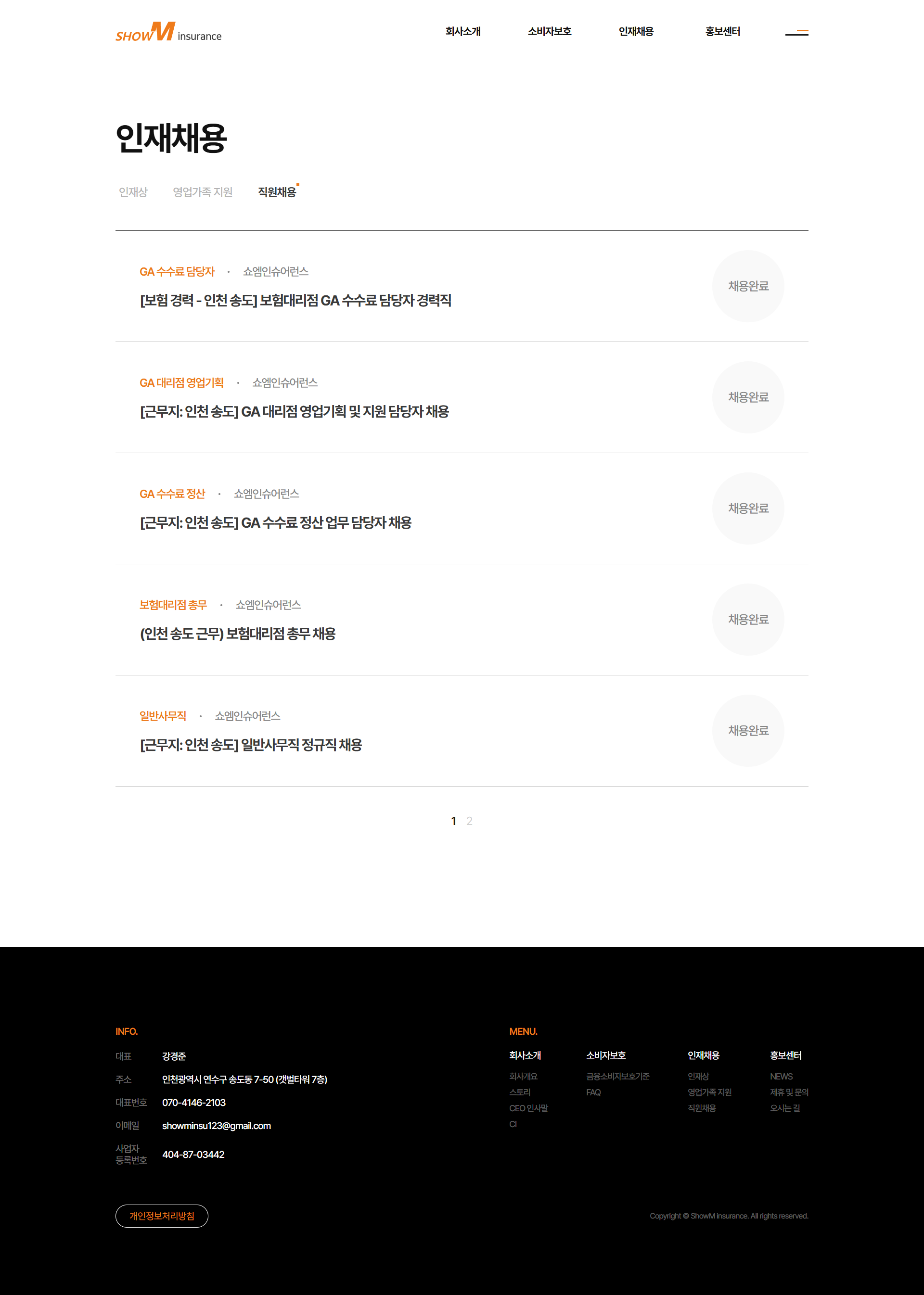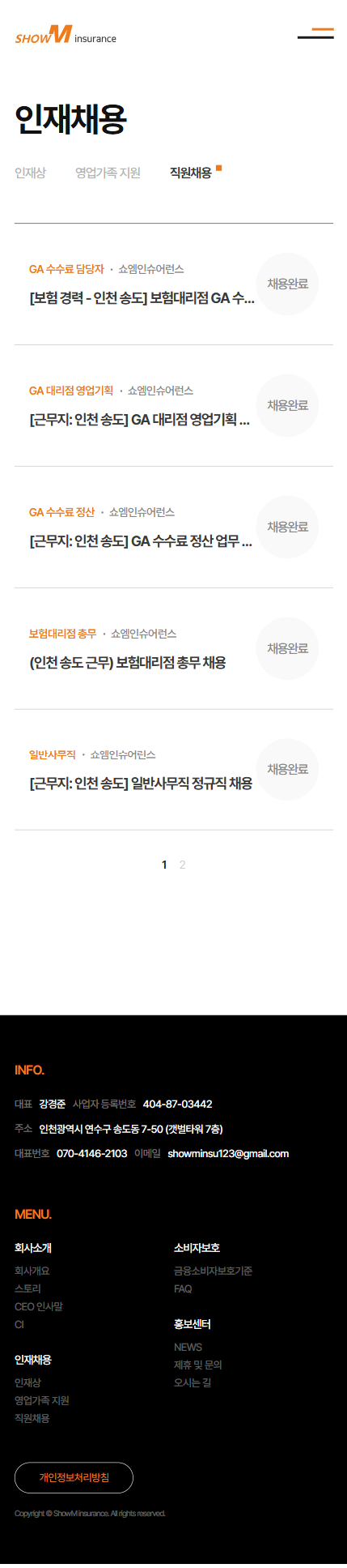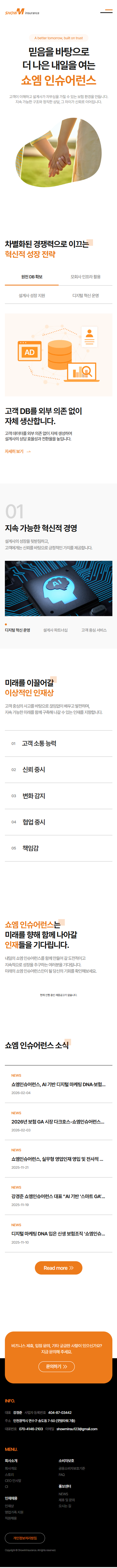 쇼엠인슈어런스 기업 홈페이지