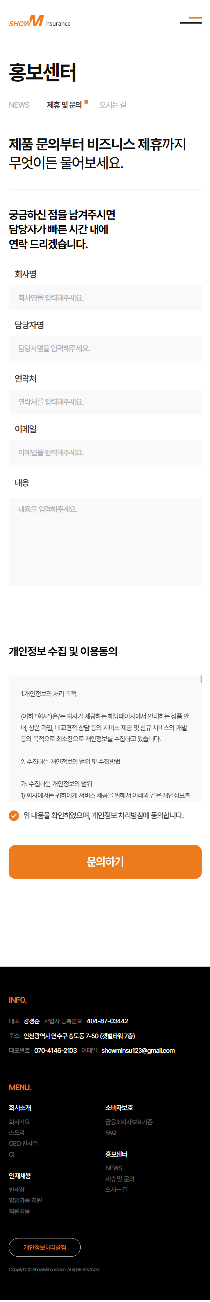 보험 전문가와 고객을 연결하는 서비스의 신뢰도를 높이기 위해 구축된 기업 홍보 사이트입니다.