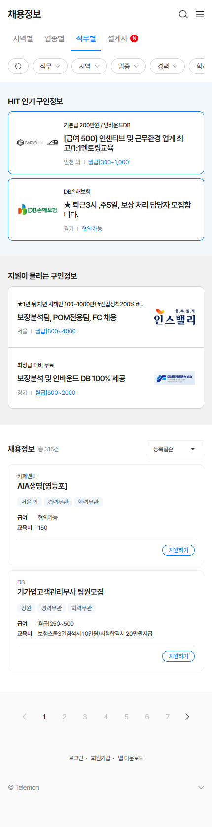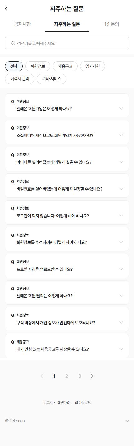 실사용자를 대상으로 운영 중인 채용 플랫폼 '텔레몬'의 퍼블리싱 구축 및 유지보수를 진행하였습니다.